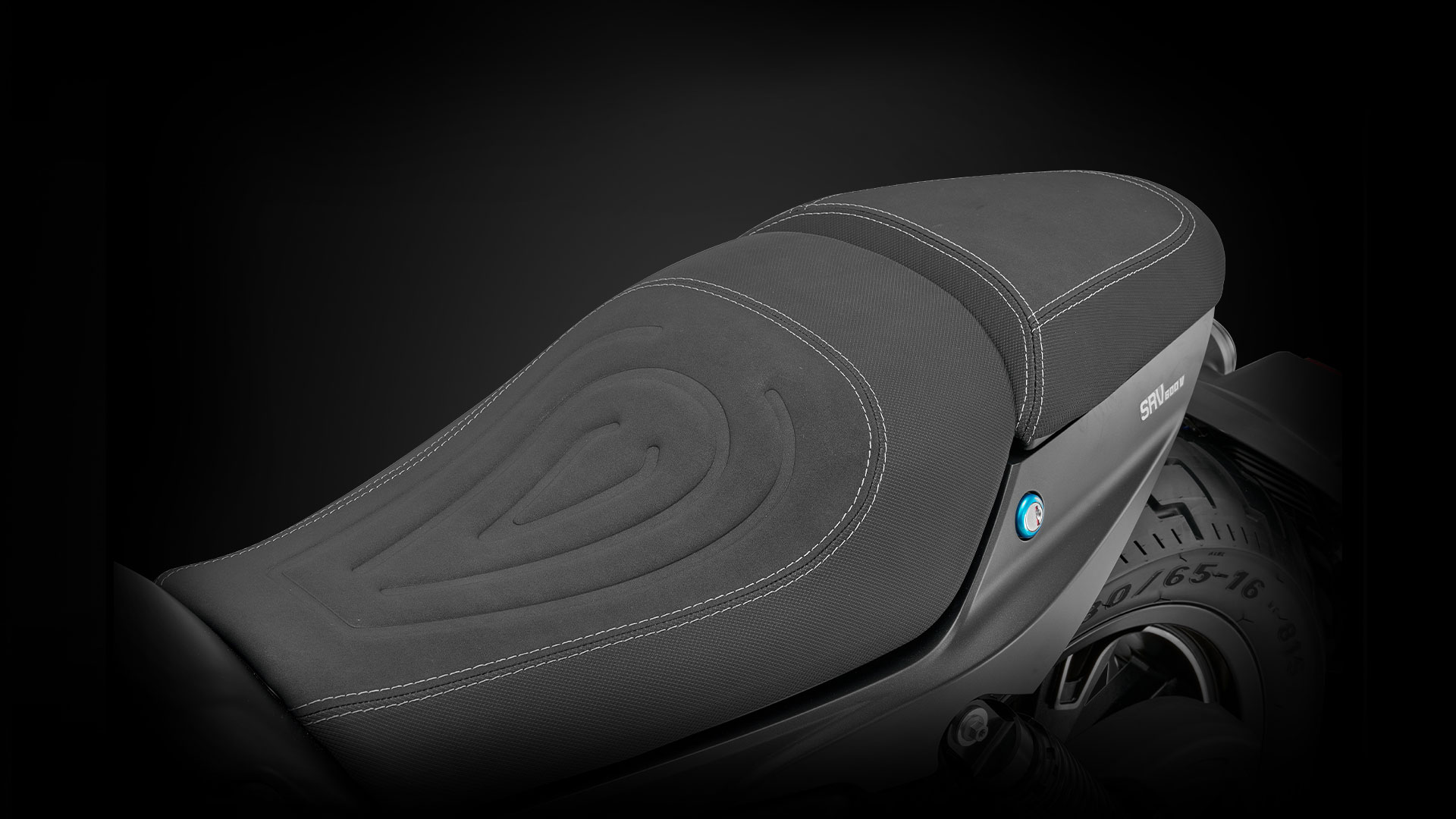 Η SRV 600V ξεχωρίζει και στη λεπτομέρεια, με σέλα που αποπνέει custom αισθητική. Οι εμφανείς εξωτερικές ραφές και το ανάγλυφο σχέδιο τονίζουν την premium εικόνα, ενώ ο συνδυασμός δύο υλικών – με βελούδινη επιφάνεια στο επάνω τμήμα και ανθεκτικό αντιολισθητικό υλικό περιμετρικά – χαρίζει ιδιαίτερο στυλ και αντοχή. Με ύψος στα 720 mm, η σέλα διευκολύνει την πρόσβαση στο έδαφος και την ευκολία στον χειρισμό.